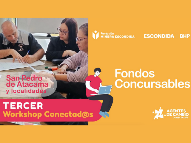 La Plataforma Agentes de Cambio “conectad@s” registrada por FUNDACIÓN MINERA ESCONDIDA tiene por único y exclusivo propósito poner a disposición de sus usuarios datos que permitan la vinculación de personas u organizaciones de la sociedad civil con intereses comunes y convergentes para el logro de sus objetivos. La información que proporciona FME es de exclusiva responsabilidad de quienes la han entregado para los fines antes indicados, de modo que ellos no constituyen ni configuran formas de patrocinio, auspicio, recomendación o sugerencia de ningún tipo por parte de FME para la vinculación entre los interesados.